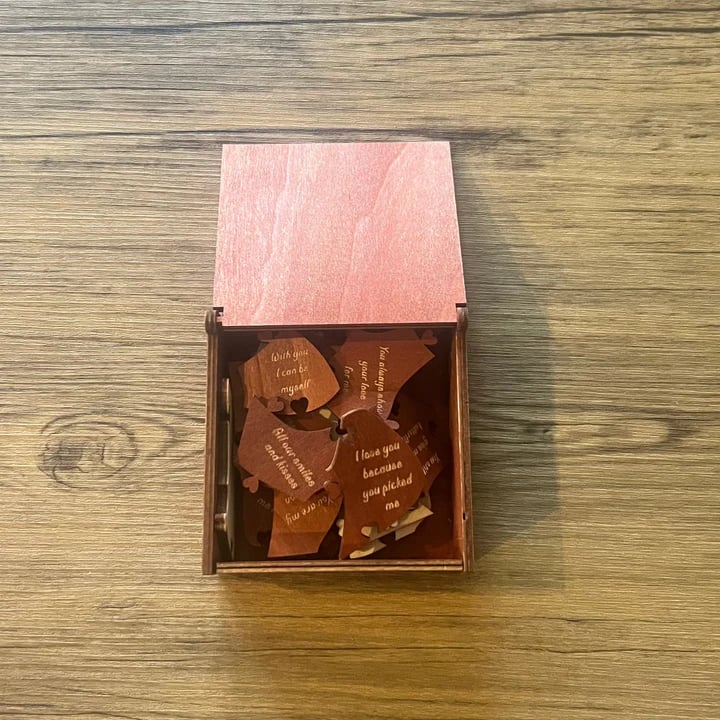 This wooden heart puzzle turns 10/20 of those reasons into a tangible gift theyโll hold forever.